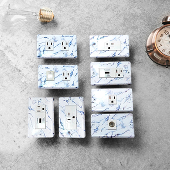 簡約及優雅的大理石紋,替空間帶來清新典雅的質感。此系列有1開、2開、3開、4開、6開、2插孔、4插孔...等選擇,可依各種居家環境、營業場所,帶來不同於以往的工業風新選項。